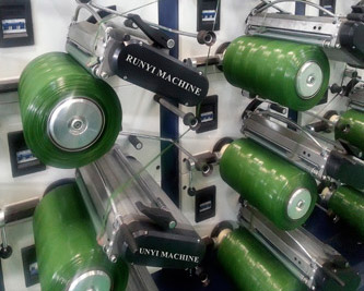 RY系列塑料草絲單絲機(jī)組引進(jìn)、吸收德國先進(jìn)技術(shù),采用PLC程序控制,變頻調(diào)速等先進(jìn)技術(shù)。其主要的電器元件均采用國外優(yōu)質(zhì)產(chǎn)品;擠出機(jī)螺桿料筒采用38CrMoAIA優(yōu)質(zhì)鋼材特殊加工而成;冷、熱水箱采用優(yōu)質(zhì)不銹鋼板制造,牽伸熱水箱采用先進(jìn)的溢水式和定型采用國外先進(jìn)熱風(fēng)烘箱,從而使該機(jī)組的主要技術(shù)指標(biāo)達(dá)到國際^,其速度快、產(chǎn)量高、能耗低、單絲成型質(zhì)量好。整個機(jī)組結(jié)構(gòu)緊、造型美觀、運(yùn)行平穩(wěn),控制靈敏可靠,制造工藝精良,操作方便,安全可靠。